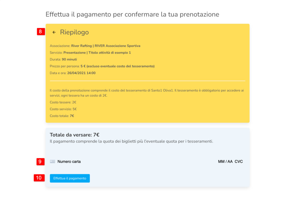 - Inserire i dati per il pagamento